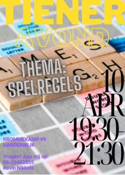 Deze keer gaan we aan de slag met thema “spelregels” vanuit de Bijbel. Een gezellige avond waarin we leuke spelletjes gaan doen. Neem gerust een vriend, vriendinnetje, broer, zus of spelletje mee.