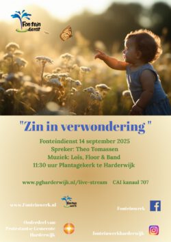 De Fonteindienst begint om 11.30 uur in de Plantagekerk en is ook te bekijken via CAI TV kanaal 707 of via de website www.pgharderwijk.nl/live-stream (klik op de foto van de Plantagekerk).