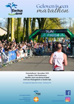 Er is oppas en kinderdienst. Na afloop is er koffie, thee en limonade, en gelegenheid elkaar te ontmoeten.De Fonteindienst begint om 11.30 uur en is te bekijken via CAI TV kanaal 707 of via de website www.pgharderwijk.nl/live-stream (klik op de foto van de Plantagekerk).