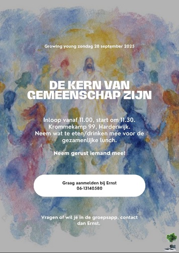 Ja ja we mogen weer!! Bij de eerste bijeenkomst op zondag 28 september gaan we stilstaan bij hoe je een gemeenschap vormt. Dit sluit aan bij het nieuwe jaarthema van Fonteinwerk.
