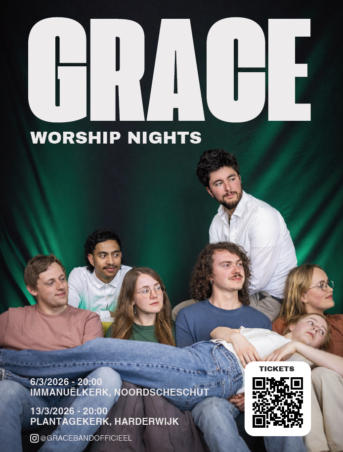 Wij zijn GRACE, een 7-koppige gospel- en aanbiddingsband. In maart organiseren wij twee avonden vol aanbidding: van hymnes tot Opwekking tot gospel en àlles ertussenin.